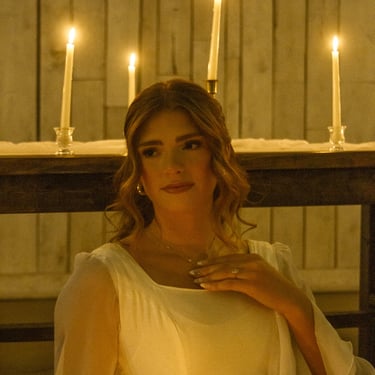 A styled shoot shot in Anderson, Indiana in December of 2025. The shoot was inspired by the elegance of Pride & Prejudice with photographers Chrissy Potter and Grace Anderson. The shoot took place at The Crystal Coop and featured vendors Ashley Bennett and Arrin Waterman.